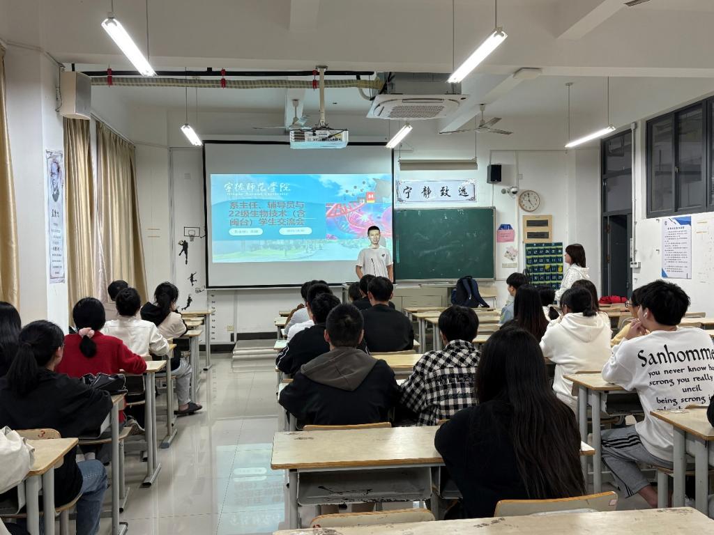 为帮助2022级生物技术(含闽台)专业学生尽早明晰学业规划、把握就业形势、了解升学路径,做好未来发展的前瞻性准备,生物技术系于2025年10月30日下午在教学楼CA203教室召开专题交流会。生物技术系主任张承康、2022级本科生辅导员吴越与全体2022级生物技术(含闽台)专业学生参加了会议。