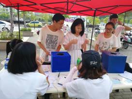 活动共分四个区域——看图答学名区、答题区、拓印制作区、植物介绍区。看图答题区展示的所有植物图片,均为校园角落的各类植物,大家对此纷纷表示出极高兴趣并积极参与答题过程。熟悉的模样却陌生的学名,极大的勾起同学们的求知欲,自然坊的工作人员借此向大家科普那些校园里常遇的植物,从而丰富我校同学的知识面。在拓印体验区中,同学们通过实地体验,即感受到植物拓印的天然与美丽,更了解到植物色素的由来。体验拓印的林同学说“第一次体验天然色素的效果,也进一步了解了什么是色素,在体验中学到了课堂上学不到的小知识,很好。”。