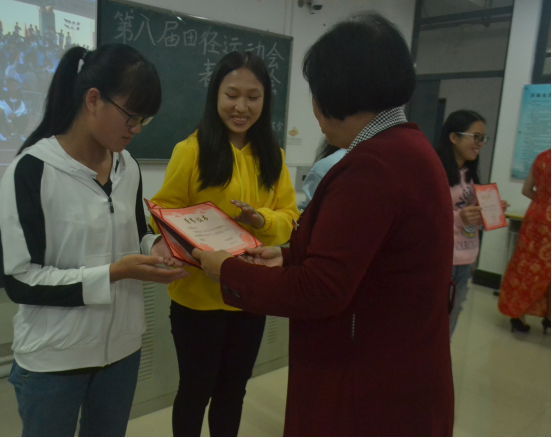 最后陈爱平书记和各辅导员为在本次运动会中获得名次的同学颁发了奖状。体育部代表和运动员代表都上台发言表态,表示在明年的运动会上一定要好好表现,不再留有遗憾。