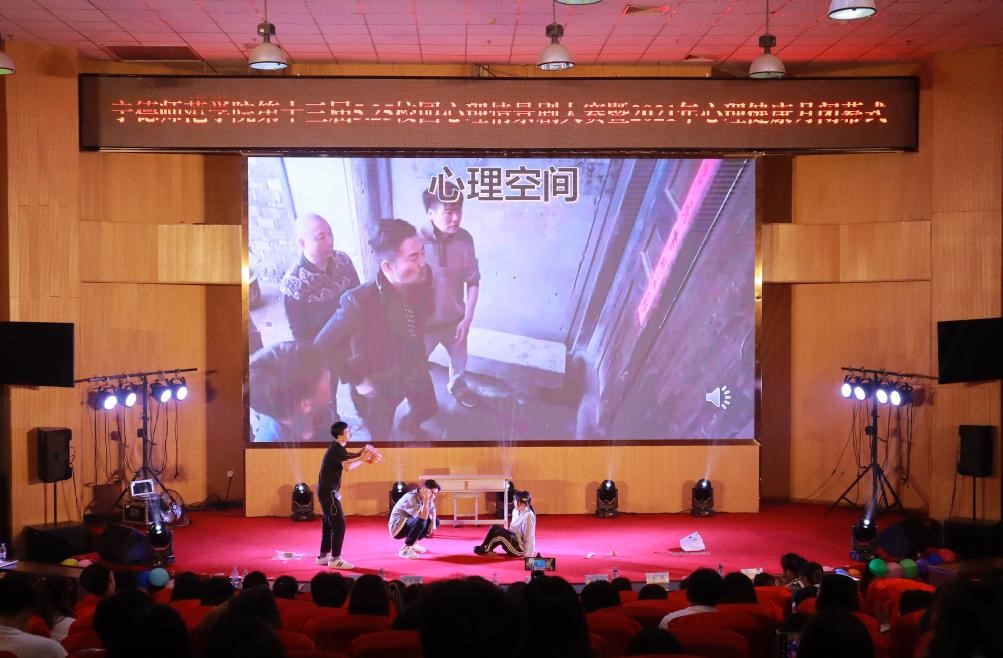 2021年5月25日,由宁德师范学院学生工作部(处)、心理健康教育中心、学生发展与服务中心主办的宁德师范学院第十三届“5.25”校园心理情景剧大赛暨2021年心理健康月闭幕式在宁德师范学院图书馆报告厅举行。此次心理剧大赛共有十个剧目参赛,其中,我院学生何吉杭、卓荣珠、刘芳芳、邱张毅、周楚晗、陈野、兰雨欣、茅会坚参加并出演心理剧目《选择》荣获一等奖和原创作品奖。