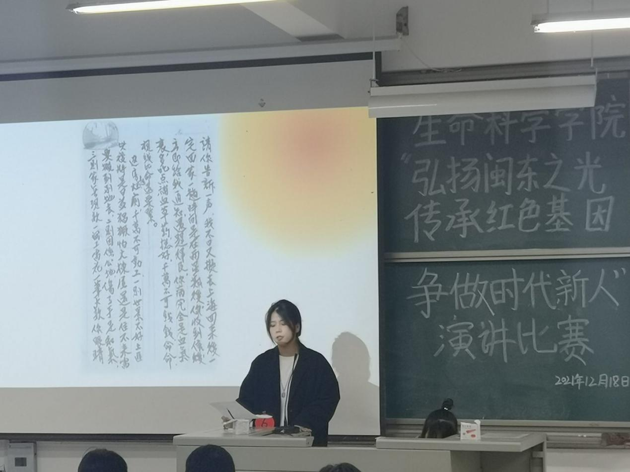 为全面展现闽东的光荣革命历史及其对中国革命的贡献,更好地教育引导学生自觉弘扬“闽东之光”,我院于12月18日在求实楼CC201举办“弘扬闽东之光、传承红色基因、争做时代新人”演讲比赛。共有130余人参加本次活动。