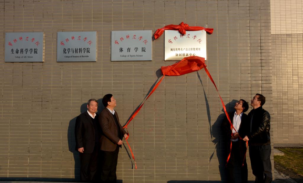 会议结束后,林跃鑫教授、梁一池教授、长江学者、国家杰出青年基金获得者福建农林大学植保学院院长魏太云教授与刘伟院长一起来到求实楼前为“宁德师范学院闽东优势农产品高值化利用协同创新中心”揭牌。