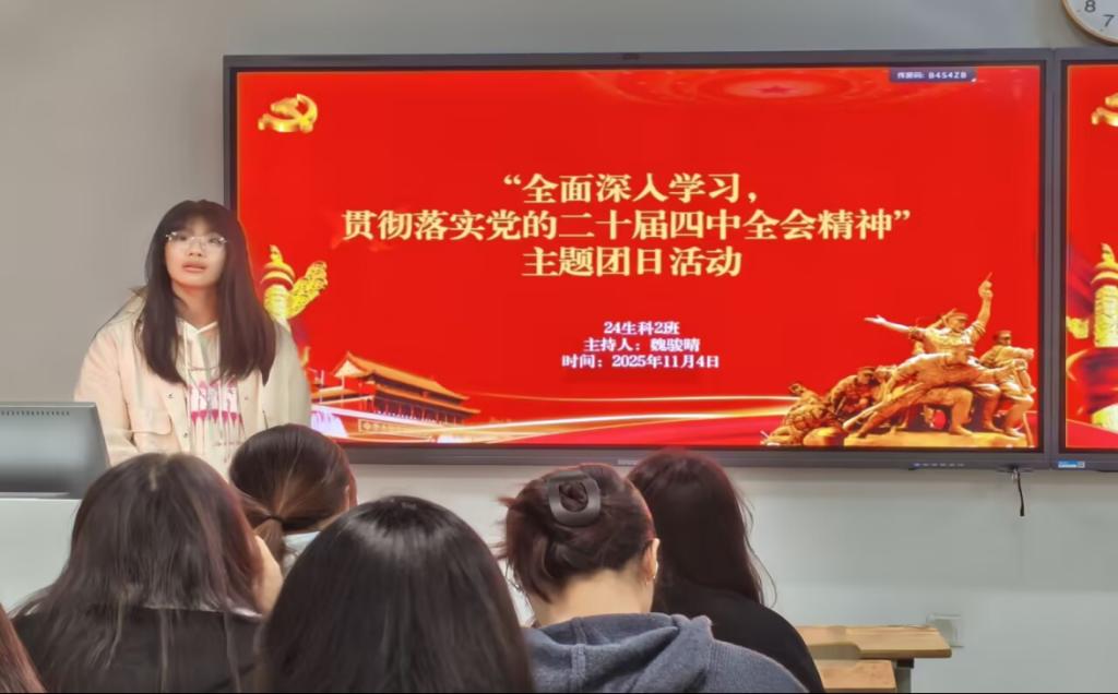 我院团委组织各班团支部于2025年11月3日至2025年11月10日开展“深入学习贯彻党的二十届四中全会精神”主题团日活动。共21个团支部参加,学生人数810人,团员人数447人,参与人数810人,总人数覆盖率达100%。