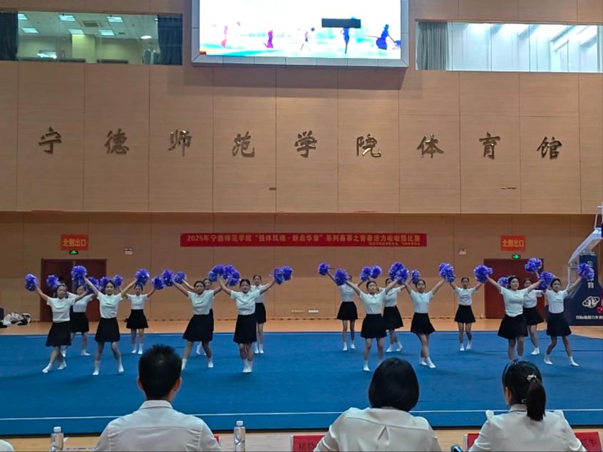 为了丰富精神文化生活,营造体育文化良好氛围,普及和提高学生的啦啦操兴趣爱好与竞技水平,2025年11月2日,宁德师范学院啦啦操比赛在校体育馆隆重举行。我院选派了17名同学,组成啦啦队参与了本次比赛。