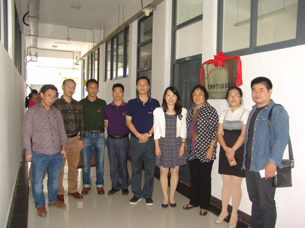 最后,在求实楼,校党委副书记徐晓丹、院党委书记陈爱平、院长刘伟、生物科学与技术系主任陈美霞共同为“生物科学与技术系”成立揭牌。