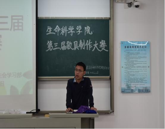 2018年4月22日上午,由生命科学学院主办的第三届教具制作大赛在CC201正式举行。大赛邀请罗芬、刘凯良、史辉、周逢芳和周银珠5位老师担任评委。大赛分三个环节:选手展示作品、讲解作品以及评委进行点评和打分。
