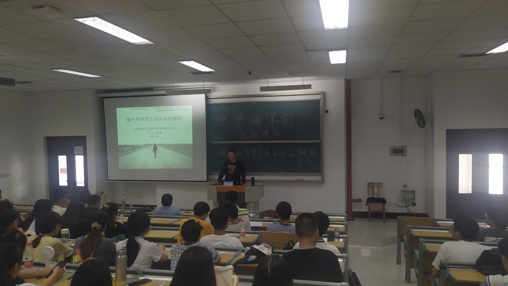 当天下午,我院邀请国家海洋局宁德海洋环境检测工程中心站工程师鲁超,在讲堂群302为生科院师生做题为“碳中和背景下再认识红树林”的学术报告,系统介绍了宁德红树林的发展现状,讲述了红树林保护所面临的难题。报告会末尾,同学们就红树林的人工干预及大面积栽种所面临的难题向老师提问,鲁超老师也当场解答了同学们的疑惑。