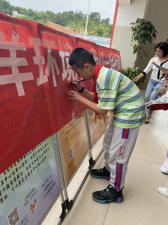 6月8日中午11:00,海洋资源开发技术系组织学生在旧食堂二楼摆设宣传点,志愿者们积极为路过的老师和同学们讲解宣传单的内容:“保护海洋生物多样性,人与自然和谐共生”的纪念世界海洋日主题;总书记关于建设海洋强国的信念;宁德市海洋渔业发展现状等相关知识。师生们纷纷对此活动表示支持,两百余人在横幅上留下了自己的签名。