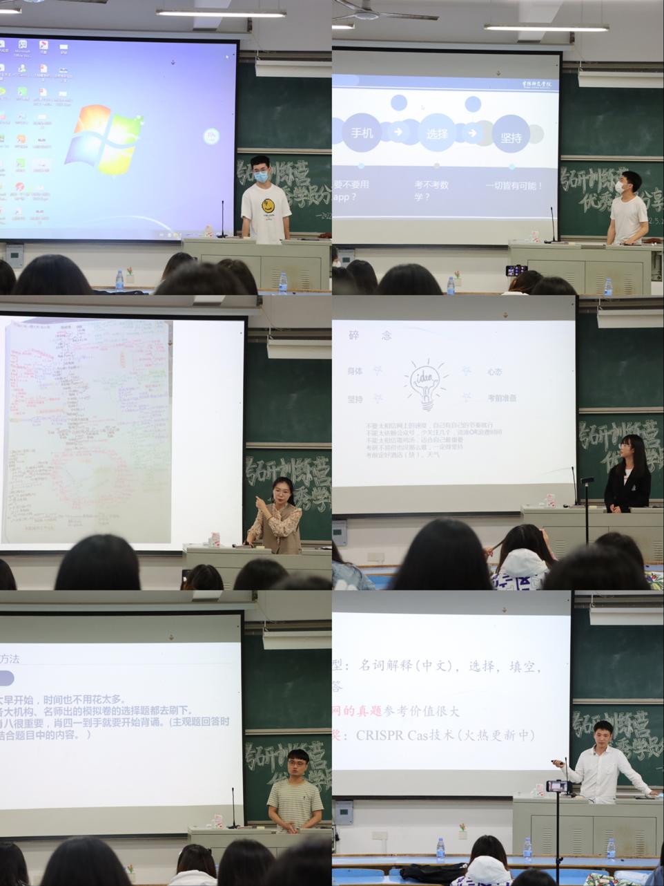 为让我院考研学生更好了解考研形势。我院于2022年5月22日在CC201举办考研训练营优秀学员分享会,我院生物技术系副教授史辉、2018级辅导员王珂参会。