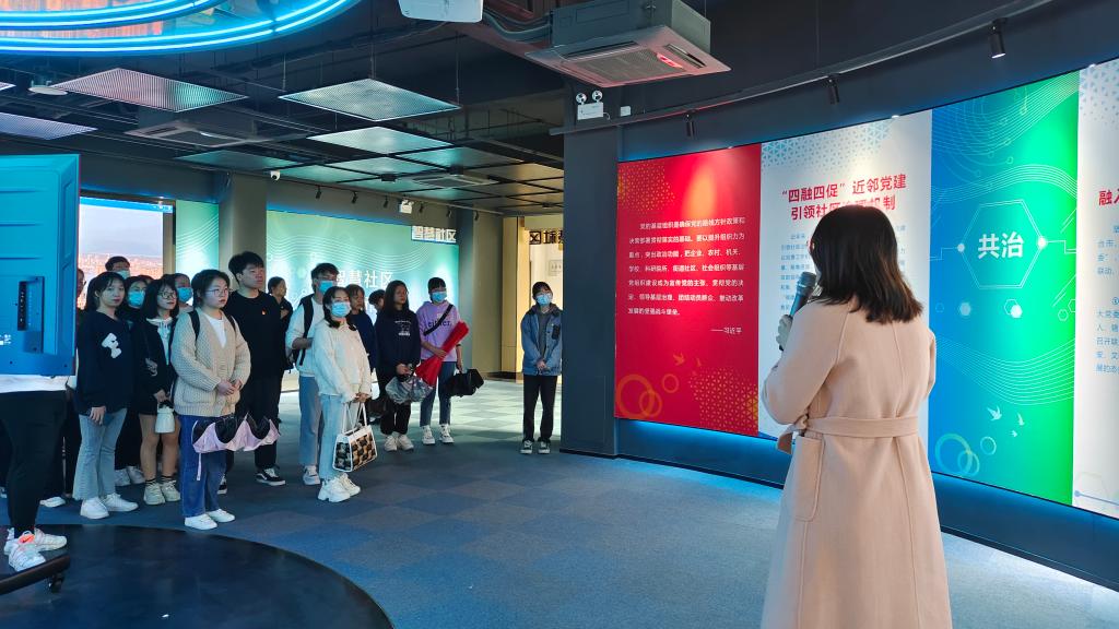 学生党员的到来受到湖滨社区工作人员的热情接待。工作人员耐心地为学生党员们讲解了湖滨社区“四融四促”的近邻党建社区治理模式,即融入“大网格”以促共治,融入“大数据”以促智治,融入“大民生”以促善治,融入“大邻里”以促德治。随后社区支部书记亲自为大家介绍了东侨经济技术开发区的“前世今生”,从一张张照片、一段段文字、一件件样品中学生党员们可以看到东侨经济技术开发区数十年来飞快地、高质量发展的状况,从中受益匪浅。