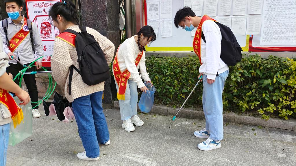 参观结束后,师生党员深入社区,把青春奋斗与雷锋精神有机结合,把志愿服务与日常生活紧密联系,主动发挥奉献精神,不怕脏、不怕累,手持工具和垃圾袋对社区内卫生死角的烟头、落叶、零食包装袋进行了认真细致的打扫和清理,力所能及贡献自己的绵薄力量。