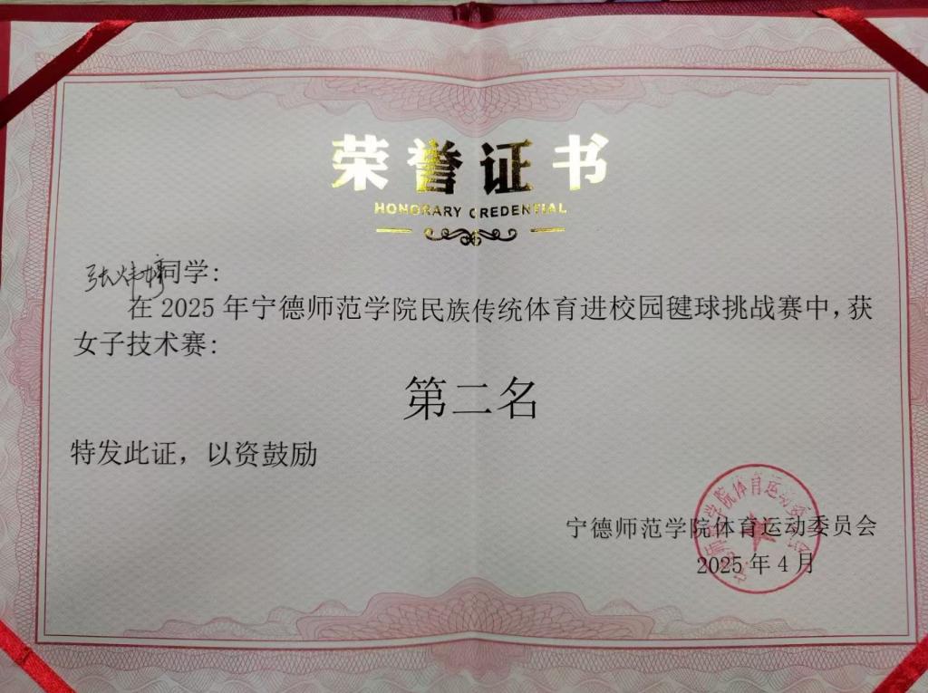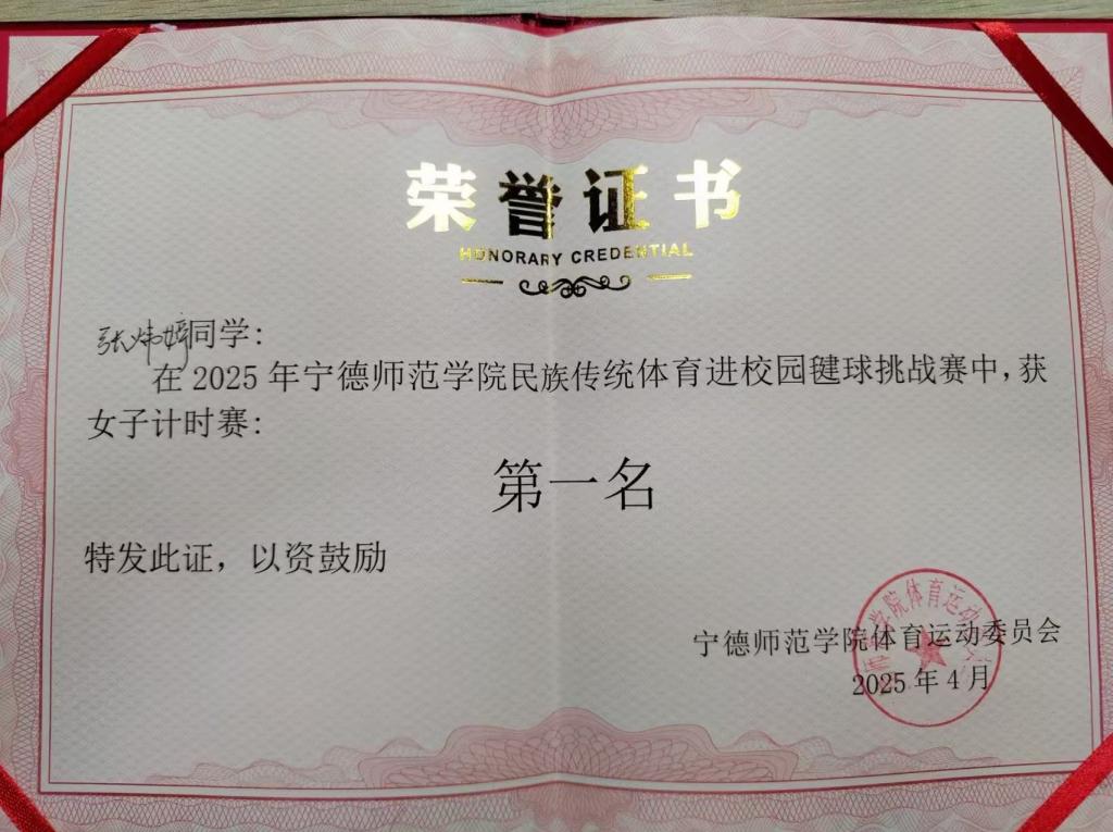 经过多轮激烈角逐,生物科学与工程学院的张炜婷同学凭借扎实的基本功和稳定的发挥脱颖而出,勇夺女子计时赛冠军,并荣获女子技术赛亚军,充分展现了其高超的毽球技巧和良好的竞技状态。