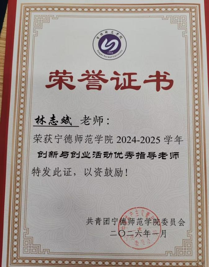 近日,共青团宁德师范学院委员会公布了2024-2025学年校级优秀指导老师评选结果。我院王振华、林志斌、刘凯良三位教师凭借扎实的专业素养、严谨的工作态度及出色的指导成效,脱颖而出,分别斩获此项荣誉,为学院增光添彩。
