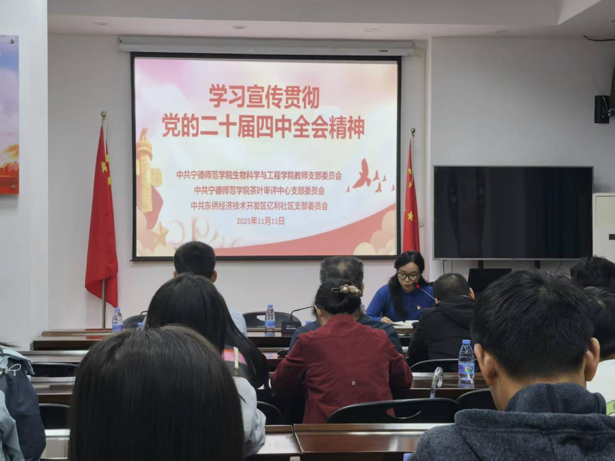为深入学习贯彻党的二十届四中全会精神,落实“加快经济社会发展全面绿色转型,建设美丽中国”相关部署要求,11月11日,宁德师范学院生物科学与工程学院党委牵头,组织教师党支部、茶叶审评中心党支部全体党员与东侨亿利社区党支部开展党建共建活动,将绿色发展理念转化为具体实践,以实际行动坚定拥护“两个确立”、坚决做到“两个维护”。