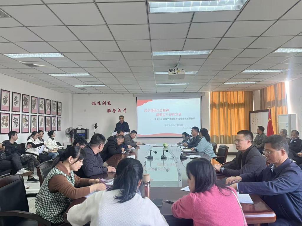 为推动党的二十届四中全会精神入脑入心、落地见效,精准锚定“十五五”时期发展战略坐标,2025年11月25日,生物科学与工程学院召开专题宣讲会,院党委书记阮少江以“深学细悟全会精神,凝聚实干奋进力量”为主题作专题辅导报告。