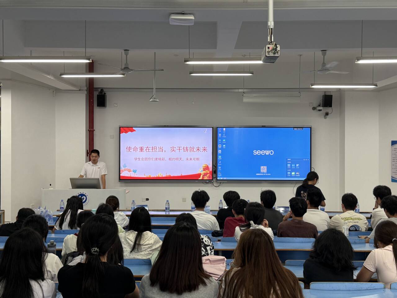 9月23日,我院学生会换届大会在求知楼CC201教室顺利召开。学工处主任王永吉老师与全体学生会成员出席大会,共同见证学生会新老交接的重要时刻。