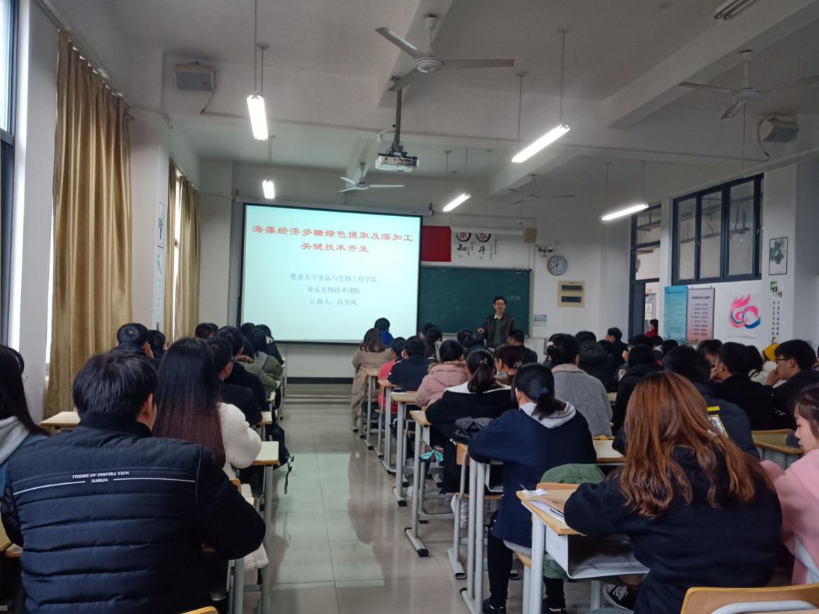 2019年1月4日,我院有幸邀请到集美大学食品与生物工程学院教授/博士生导师肖安风于求实楼CC204为我院学生开设《海藻经济多糖绿色提取及深加工关键技术开发》讲座。