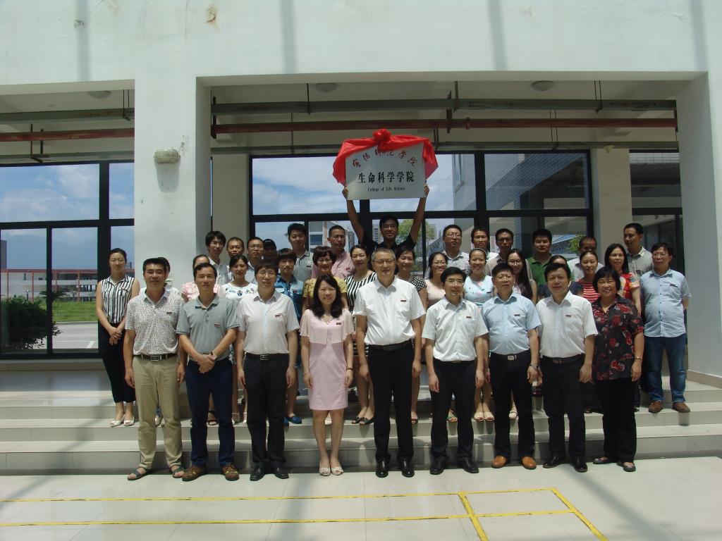 会后,在求实楼大厅隆重举行生命科学学院成立授牌授印仪式。校党委书记夏良玉、校长魏远竹、校党委副书记徐晓丹、副校长谢向东、副校长杨峰、副校长颜桂炀出席授牌仪式。生命科学学院党政负责人以及生命科学学院全体教职员工参加了授牌授印仪式。仪式由校党委副书记徐晓丹主持。仪式上,党委书记夏良玉、校长魏远竹为生命科学学院授牌、授印。