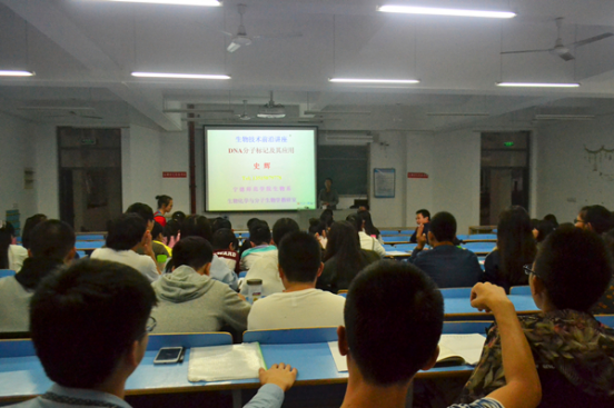 11月21日晚6:30,史辉副教授在求实楼C区201为我系学生开展题为《分子标记技术及运用》的学术讲座。讲座上,史辉副教授就DNA分子标记类型、DNA分子标记类型的性质和基本特征、DNA分子标记类型的运用以及RFLG的操作步骤这四个方面,对分子标记技术进行详细的讲解。在讲座过程中,史辉副教授主要介绍了DNA分子标记的四种类型分别为表型标记、细胞学标记、生化标记和分子标记,以及这四种遗传标记类型的运用。随后,史辉副教授依次给大家详细讲解了这四种遗传标记类型的性质和基本特征,以及这些特征的表现,除此之外史辉副教授还为大家讲解了RFLP的基本操作步骤,并对其一一作出详解。讲座上,史副教授与同学们热情地交流互动,为同学们答疑解惑,带动了同学们学习的兴趣,使同学们在讲座上不仅仅学到了知识,还开拓了视野,进一步了解到生命科学的深奥。