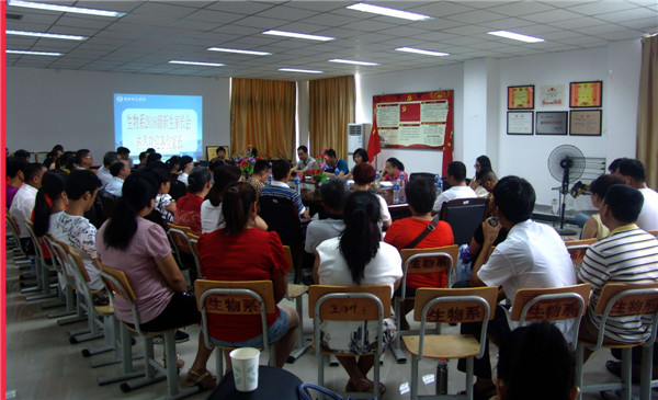 会议伊始,陈爱平书记代表生物系对各位新生家长的到来表示热烈欢迎,对他们给予的信任表示衷心的感谢,并向家长们介绍了学校的基本概况,包括我校的前身、校训、办学理念与宗旨、学分建设等。同时,陈爱平书记还简单描述了我系的在校创业团队、科研成果、获奖情况以及历年平均就业率等。