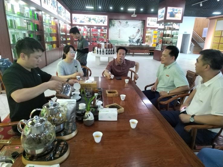 在海雾茶业发展有限公司,张秋良等一行参观了企业产品展示馆、茶叶审评室、生产车间,并与公司董事长徐奶寿先生进行座谈交流。张秋良书记全面介绍了生命科学学院基本情况,以及学院为服务闽东乡村振兴,在学校和各界人士大力支持下,设立有茶学本科专业和宁德市茶叶审评中心,致力于茶科学研究、人才培养和服务地方产业。徐奶寿先生表示,当前茶企对人才需求不断加大,急需茶叶审评、茶艺与茶叶营销等方面的技术技能人才,希望我院能输送相关专业人才到企业工作,也积极欢迎在校学生到企参观学习培训。