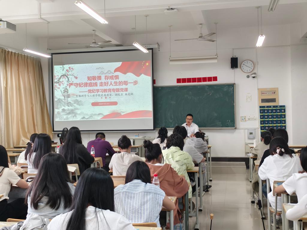 6月4日下午,我院副院长、党委委员杨克润以“知敬畏 存戒惧 严守纪律底线 走好人生的每一步”为题,为全院师生党员上了一堂生动的党纪学习教育专题党课。此次党课旨在深入贯彻中央党的建设工作领导小组关于开展党纪学习教育的部署要求,进一步推动全院师生党员增强纪律意识,提升党性修养。