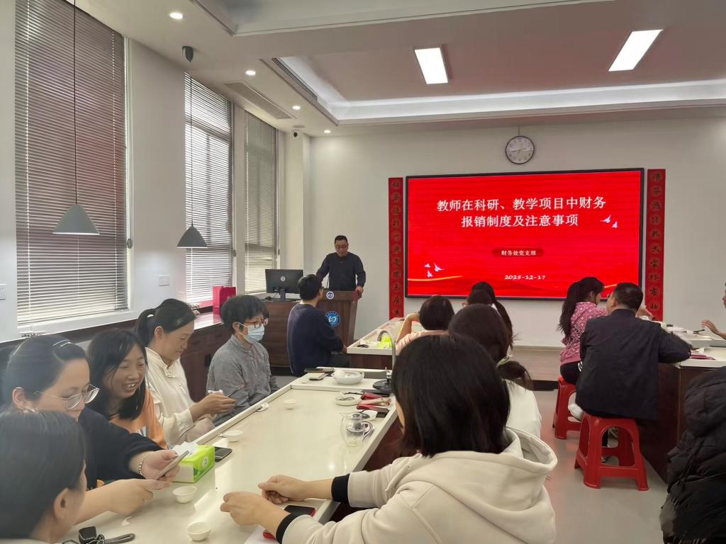 期间,茶学系系主任周子维介绍,宁德师范学院茶叶审评中心作为福建省首个高校茶叶审评中心,2021年正式揭牌,依托茶学专业学科与人才优势,以服务闽东 “三茶” 统筹和乡村振兴为宗旨,整合四大功能、组建三支先锋队,已成为联结校企政资源、推动地方茶产业提质增效的核心平台。财务处党支部魏爱萍、郑李海两位同志开展财务报销专题指导,系统解读科研教学项目财务报销制度规范,针对经费使用范围、报销审批流程、票据合规要求等高频事项进行细致讲解,并结合实际案例答疑解惑,为茶叶审评中心规范科研教学经费管理、提升经费使用效能提供了实操性指导。