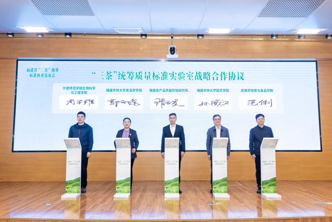 在签约环节,茶学系主任周子维代表我院与省产品质量检验研究院、福建农林大学园艺学院、福建农林大学安溪茶学院、武夷学院茶与食品学院共同签订《“三茶”统筹质量标准实验室战略合作协议》,标志着我院在茶产业质量标准领域的产学研协同迈上新台阶。