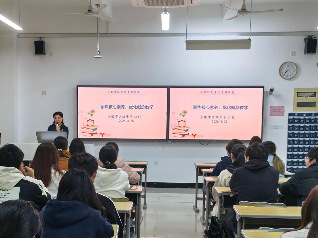 为了以素养导向优化教学,助力学子提升专业教学能力。2026年3月25日晚,我院在求实楼CC206举办“聚焦核心素养,优化概念教学”讲座,特邀宁德市高级中学江钐老师主讲,吸引了96名生工院同学参与其中。