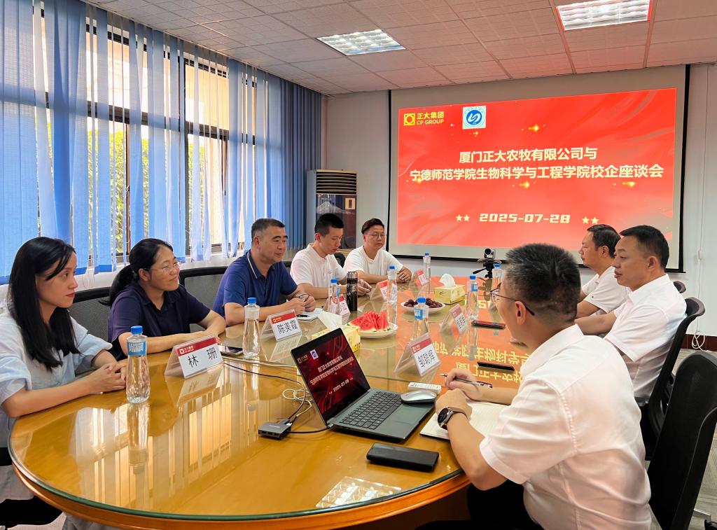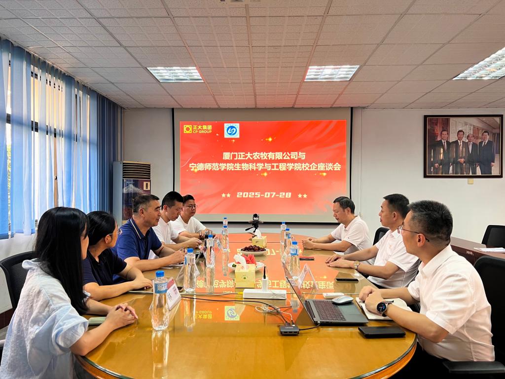为进一步深化校企合作,推动正大产业学院高质量建设,7 月 28 日,我院院长阮少江率队赴厦门正大农牧有限公司,与企业相关负责人围绕正大产业学院的建设事宜开展深入交流。副院长陈美霞、生物技术系系主任张承康、正大产业学院秘书林珊,以及海洋学院食品科学与工程专业学科带头人魏奇一同前往。厦门正大农牧有限公司总经理恒明举副总裁、副总经理卢庆林热情接待了我院一行并出席交流会。