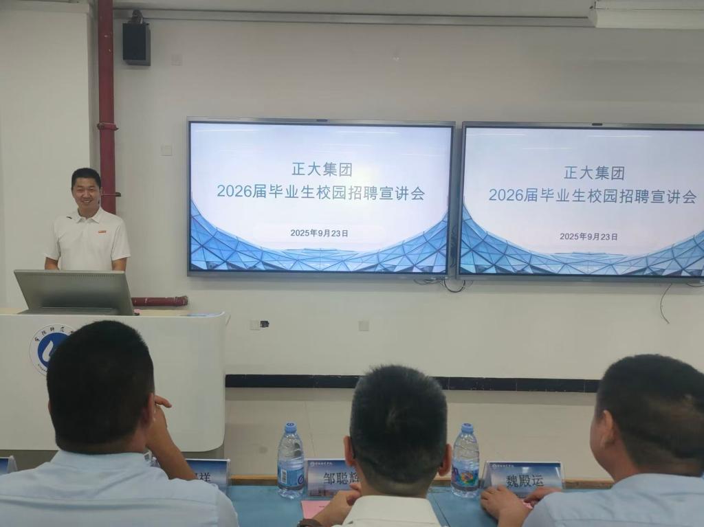 为助力2026届毕业生把握就业机遇,9月23日,正大集团2026届毕业生校园招聘宣讲会在求知楼CC201教室举行。